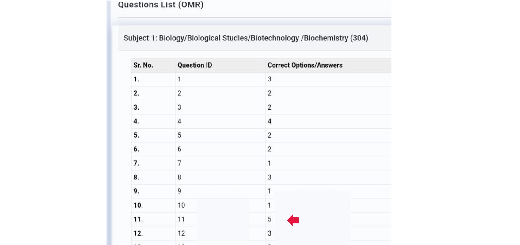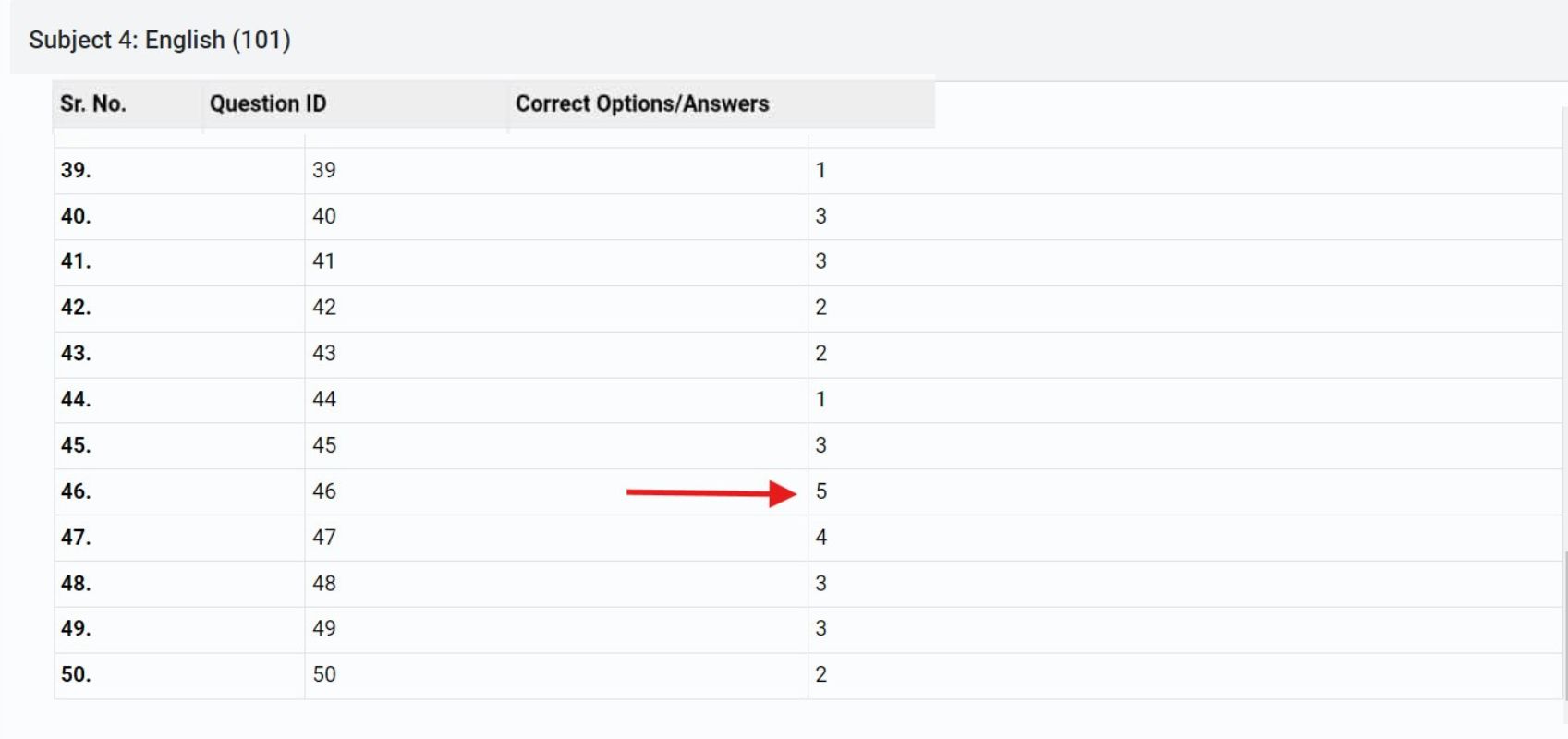 A few questions in the CUET English, Biology and Economics answer key had the fifth answer marked as the correct answer whereas no question in the CUET exam had five options to choose from.
