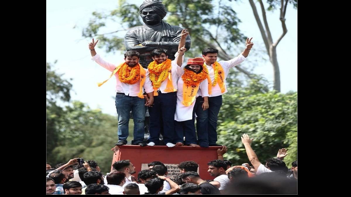Giving details, he said that out of the total 59,882 votes were received for the post of President, Anjali got 5385 votes, Anuj Kumar got 1028 votes, Aryan Maan got 28841 votes, Divyanshu Singh Yadav got 1513 votes, Joslyn Nandita Chaudhary got 12645 votes, Rahul Kumar got 724 votes, Umanshi got 5522 votes, Yogesh Meena got 514 votes and Abhishek Kumar got 535 votes.