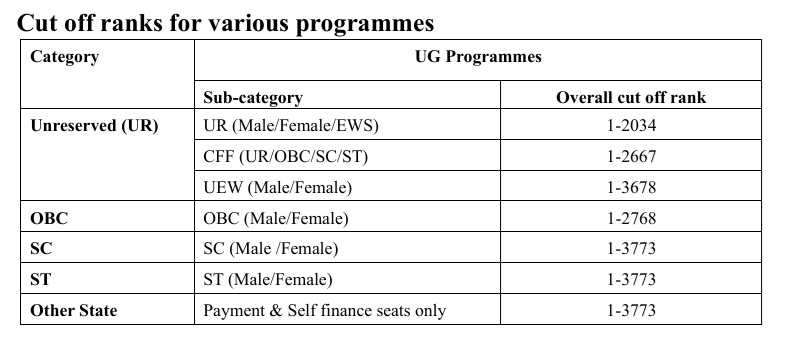 Cutoff ranks have been set based on the university's entrance exam performance, varying by category and sub-category.