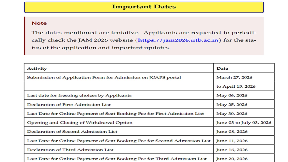 IIT JAM Counselling 2026 Dates OUT; JOAPS Portal to Open From March 27