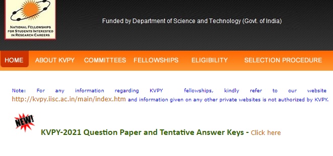 KVPY 2021 Question Papers, Tentative Answer Keys have been released for SA, SB/SX. Check steps to download below.