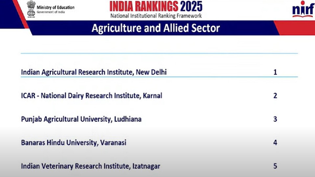 NIRF Rankings 2025 Agriculture: The Ministry of Education released the National Institutional Ranking Framework (NIRF) 2025 on September 4 for Agriculture and Allied Sectors. The Indian Agricultural Research Institute (IARI) has once again secured Rank 1 in this category, followed by ICAR at second place and Punjab Agricultural University at third. Notably, the top 5 institutions in the NIRF Agriculture Rankings 2025 have retained their positions from last year.
