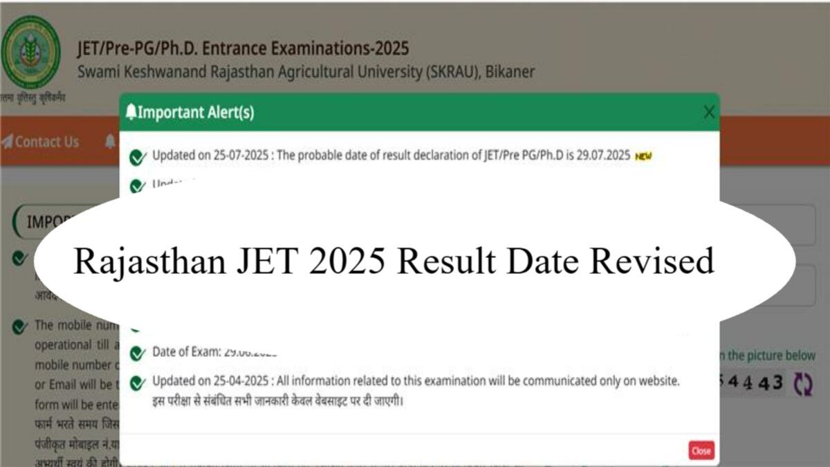 Rajasthan JET, Pre-PG, and PhD exams are important for candidates for admission into various agriculture and allied science programmes offered by participating universities across Rajasthan. Now, the result date is revised, candidates have a few extra days to stay prepared for the next steps, including counselling and admission formalities.