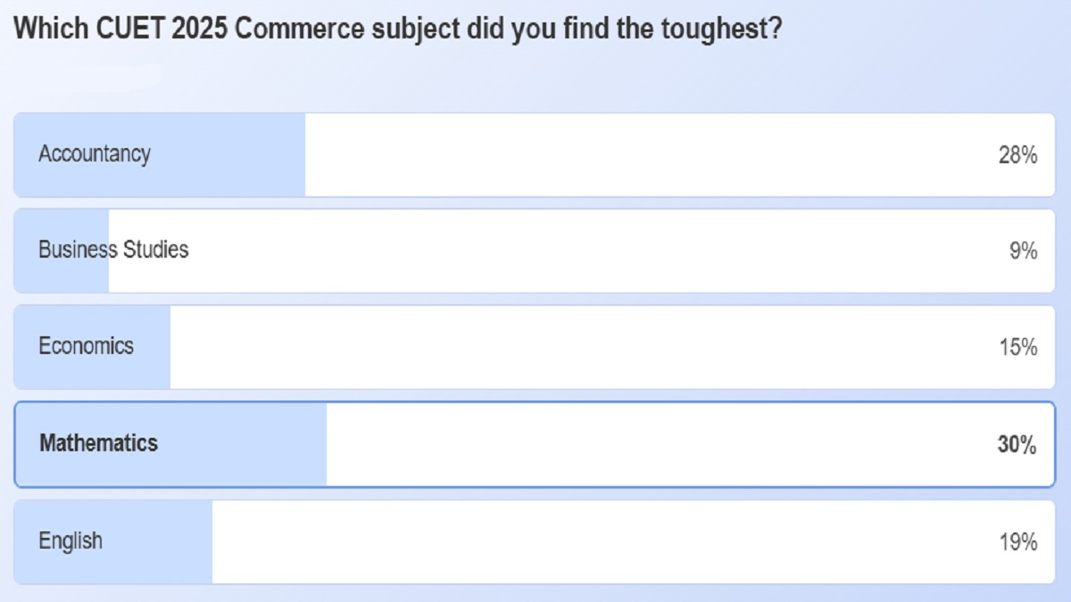 Shiksha Poll Results: CUET 2025 Commerce Toughest Subject