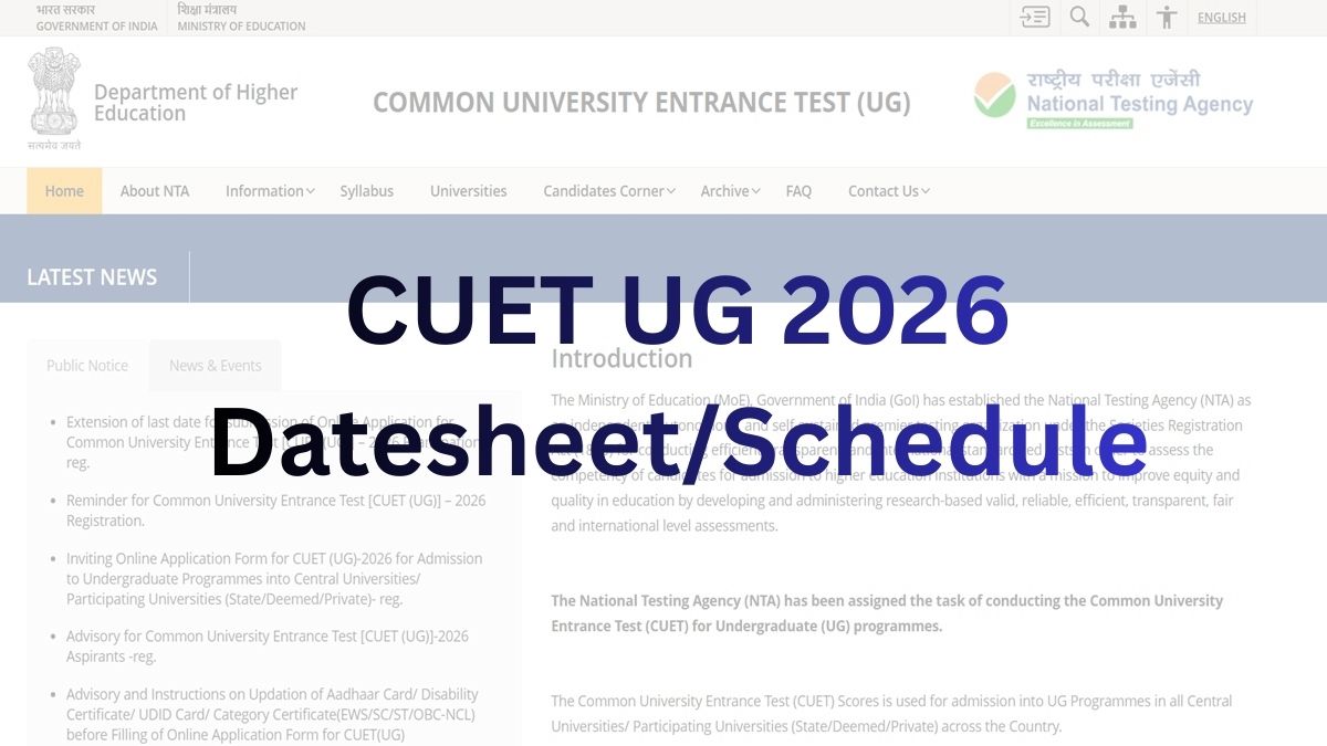 CUET UG 2026 datesheet will be released anytime soon at cuet.nta.nic.in. NTA is expected to release the CUET exam schedule 2026 for 37 subjects online. Candidates will be able to check the CUET subject-wise exam schedule and shift timings. CUET UG 2026 exam is scheduled to be held tentatively between May 11 and May 31, 2026 in CBT mode.
