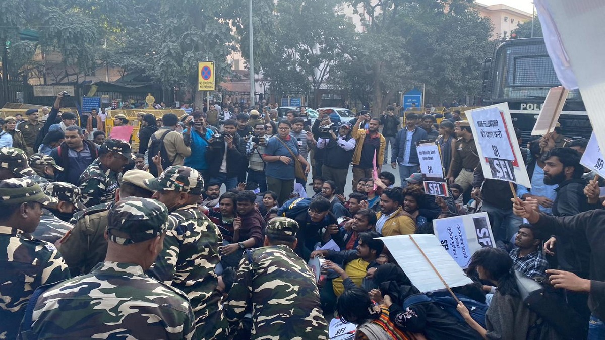 The protesting students claimed that student organizations across the country called for a protest on 12th December to mark our dissent against the ruling regime’s latest form of assault on the minority communities. Several students, including women, were forcefully detained and suffered injuries. Female comrades were manhandled by male police officers.