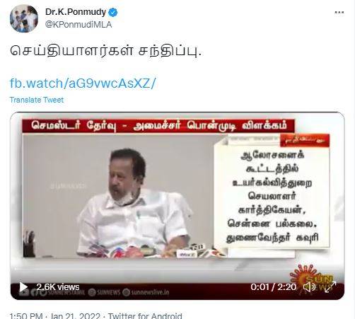 Earlier, the government of Tamil Nadu postponed the university semester exams slated for this month-end indefinitely amid the rising number of COVID-19 cases. Before the decision to postpone all the exams was announced by the state government, the University of Madras had already postponed all semester exams scheduled to begin from January 21.