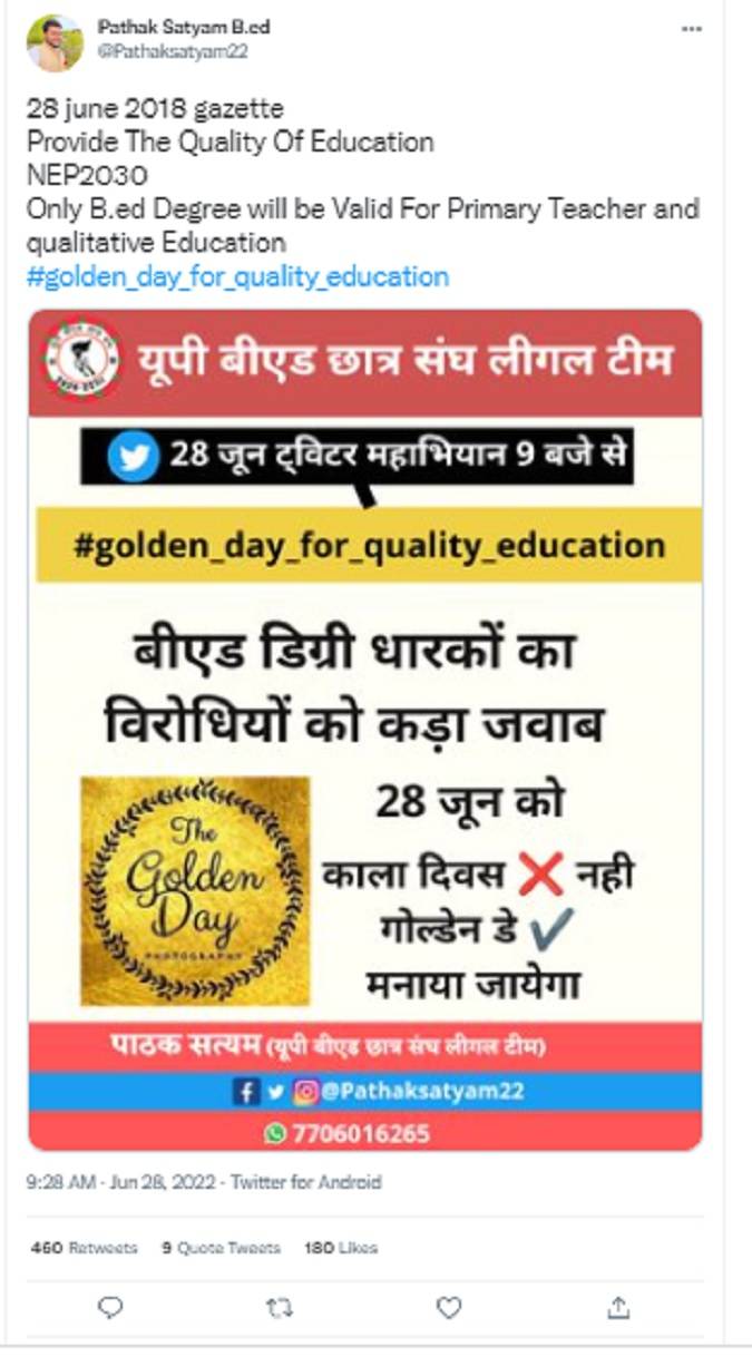 Another Twitter user said, #golden_day_for_quality_education b.ed bachao