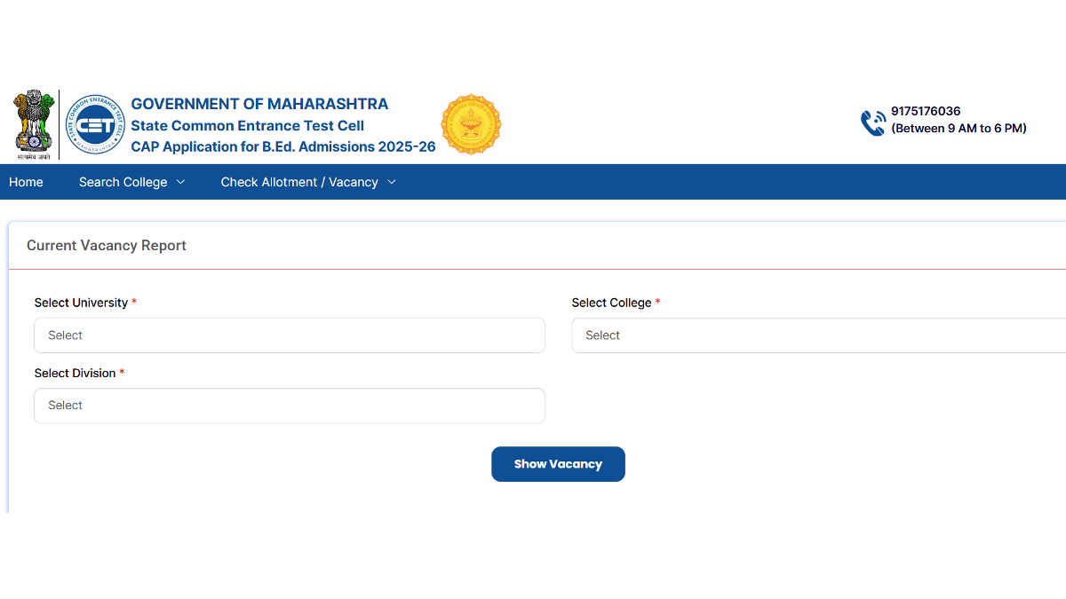 - Visit the MAH BEd CET 2025 CAP portal to check Round-I seat allotment and the vacancy report.
