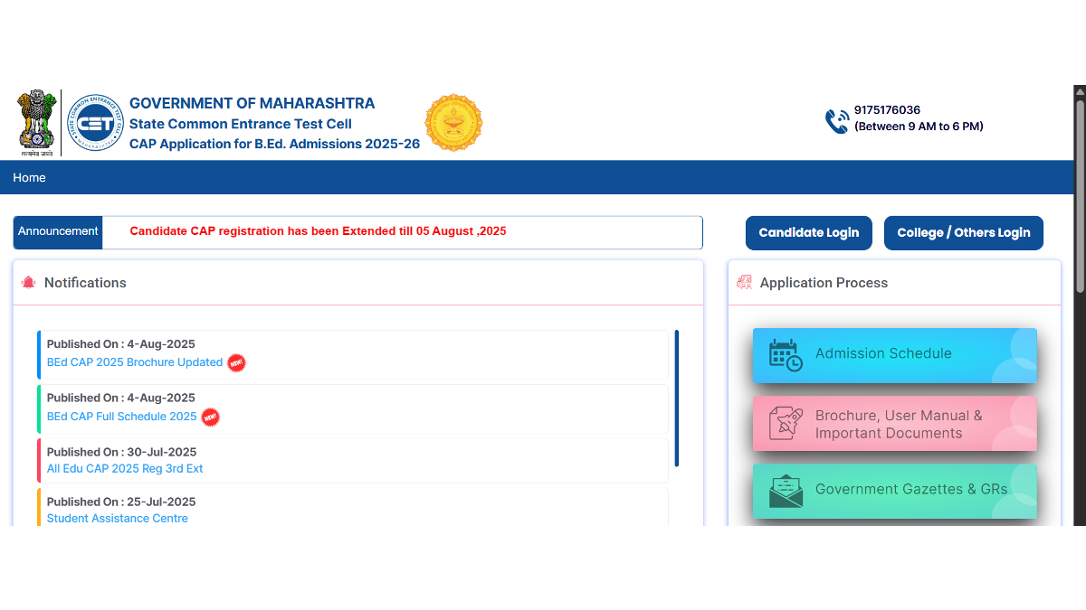 After the third extension in CAP (Centralised Admission Process) 2025 registration, State CET Maharashtra has released the complete MAH CET BEd 2025 CAP Schedule for the 2025-26 academic session. The Centralised Admission Process (CAP) 2025 brochure, containing all details, has been released alongside the schedule notice.