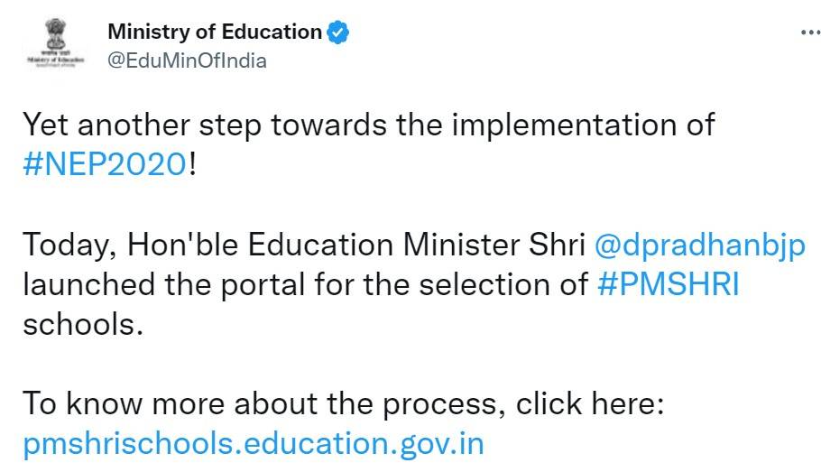 The education minister urged all state governments to apply on the portal and further informed that all government schools, Kendriya Vidyalayas, and Navodaya Vidyalayas can be the applicant. On September 7, the union cabinet approved a budget of INR 27,360 crore to upgrade PM SHRI schools.
