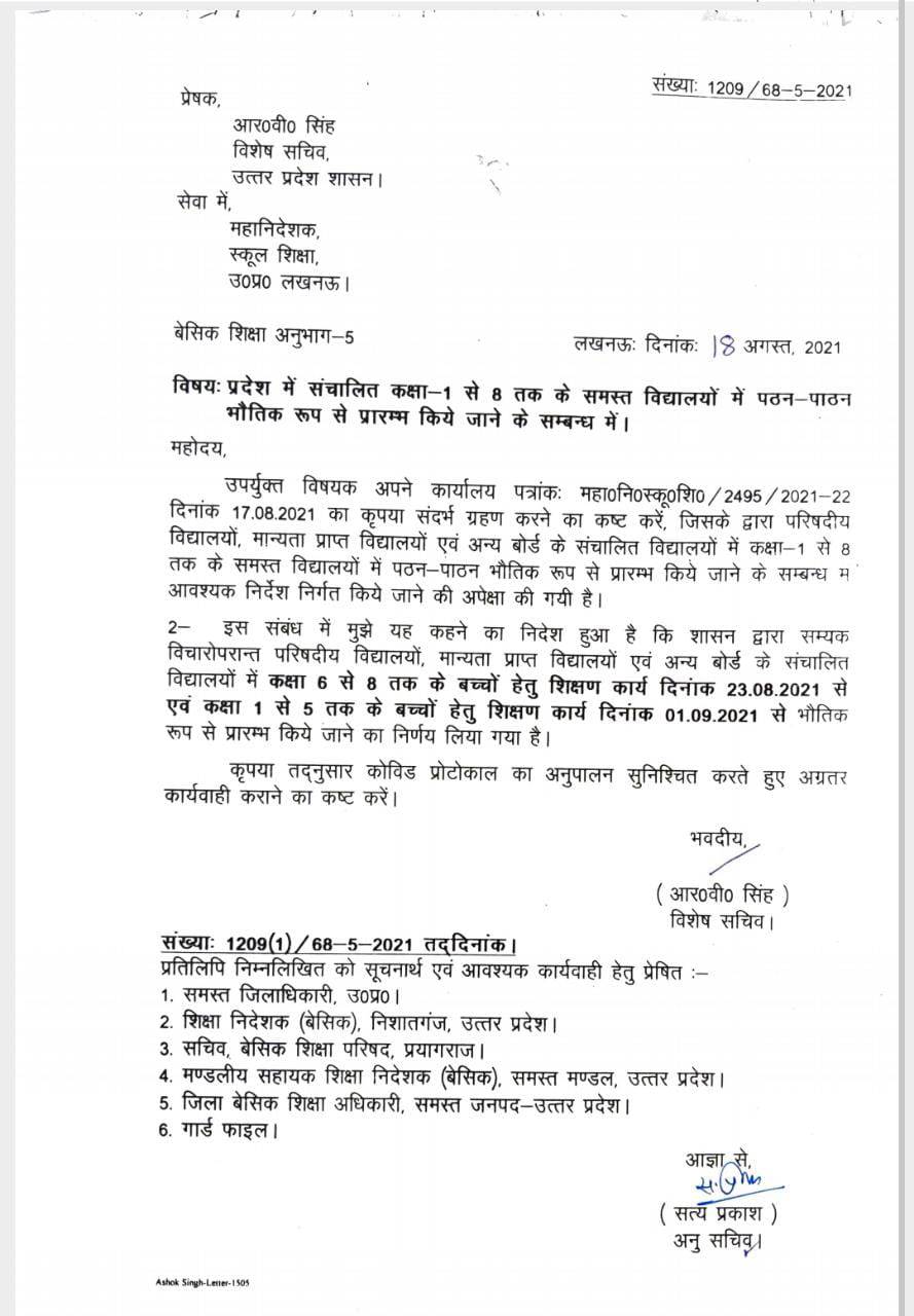 Earlier, the UP government decided to reopen the schools and other educational institutions from August 16. The state government also released the guidelines in this regard.