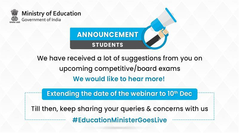 Webinar POSTPONED! Education Minister to discuss queries on board exams & entrance tests on Dec 10