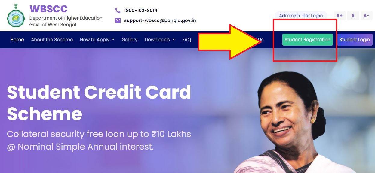 - Non registered students are required to Log in to https://wbscc.wb.gov.in to avail student credit card apply online