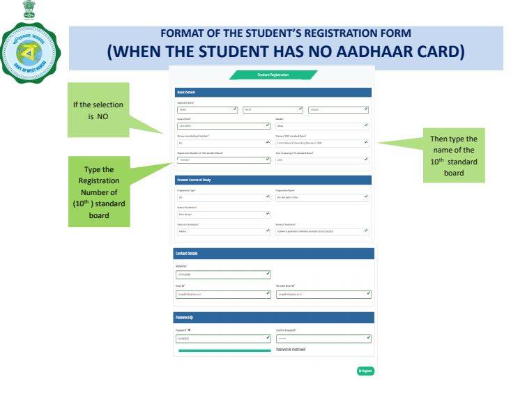 (B) WB student credit yojna registration form for students without adhaar card