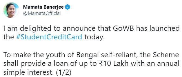 WB Students’ Credit Card: West Bengal government on June 30 introduced the student credit card scheme. Reports suggest that the initiative has been launched by the government in order to give students easy access to loans. “The limit for these loans has been set at Rs. 10 lakh and can be used by the students to fund their education,” the government said while launching the scheme.