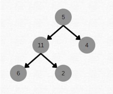 We start with an array [5, 11, 4, 6, 2] that we want to sort. The first step in Heap Sort is to create a Binary Tree out of the array. Then we generate the Max Heap from the Binary Tree created.