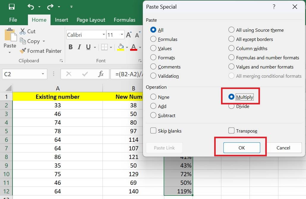 Step 5 - In the Paste Special dialog box, under the Operation section, select Multiply.