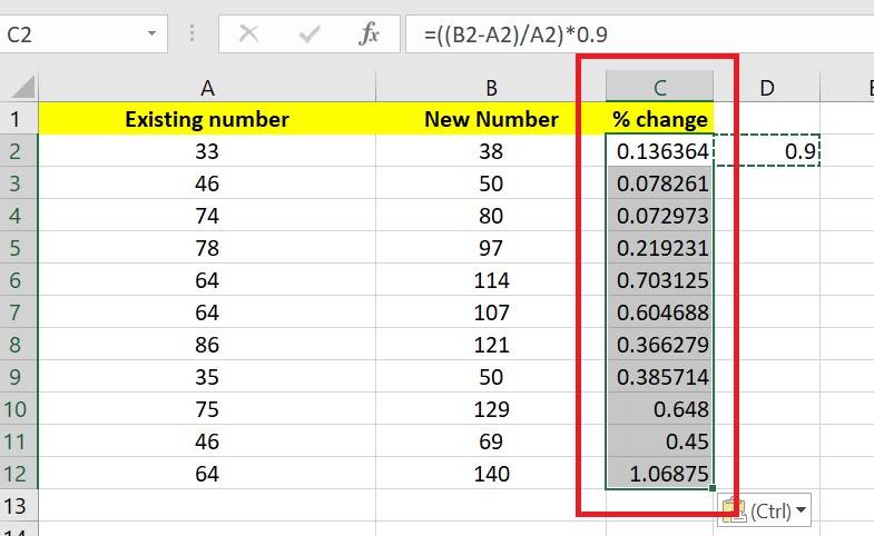 How do I calculate the percentage of change between two numbers?