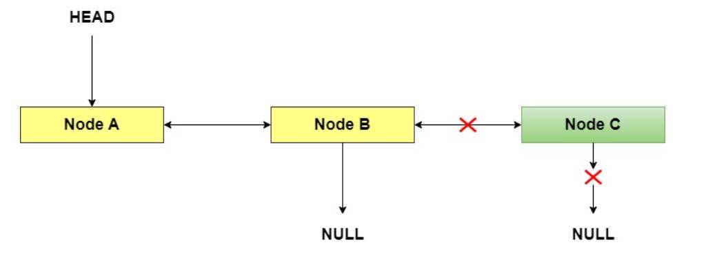 # If there is only one node elif self.head.next is None: self.head = None else: # Traverse to the last node and rearrange pointers to delete the last node temp = self.head while temp.next is not None: temp = temp.next temp.prev.next = None