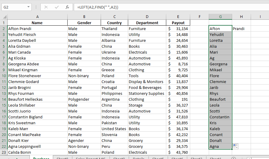 - Separating Full Names into First and Last Names: Splitting cells into first and last names if you have a column containing full names will make your data easier to sort and filter.