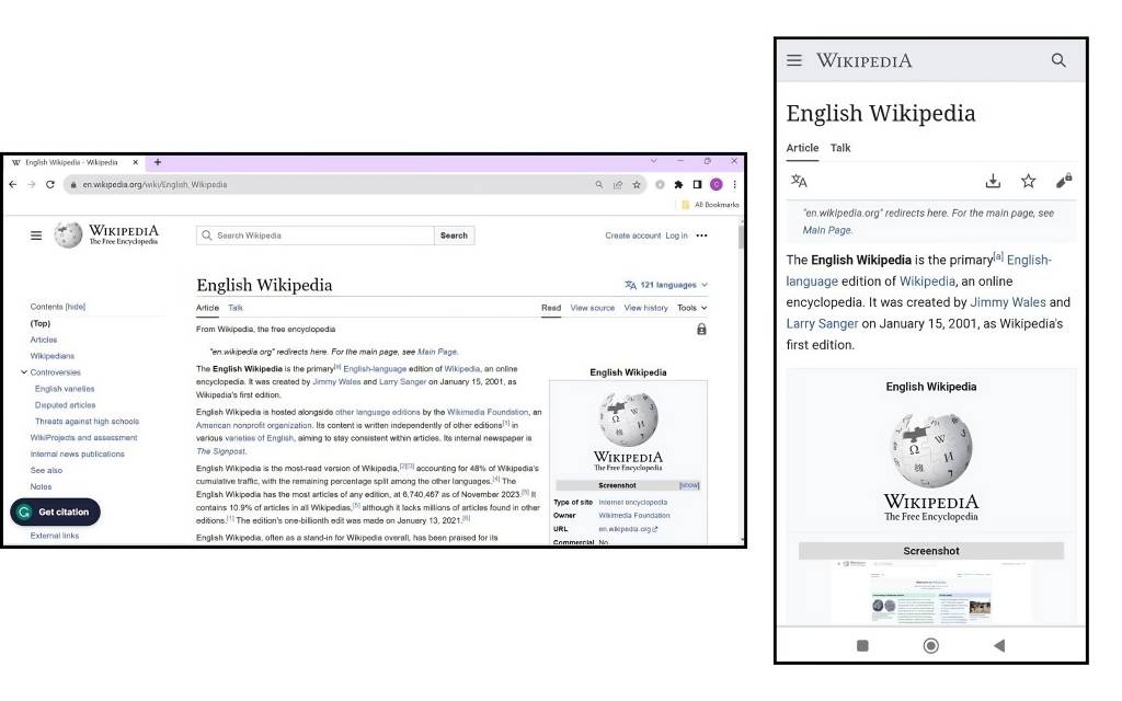 Responsive Design: Imagine a website like Wikipedia. It uses a fluid design that adjusts smoothly regardless of whether you're on a desktop, tablet, or smartphone. The content reflows to fit the screen size.