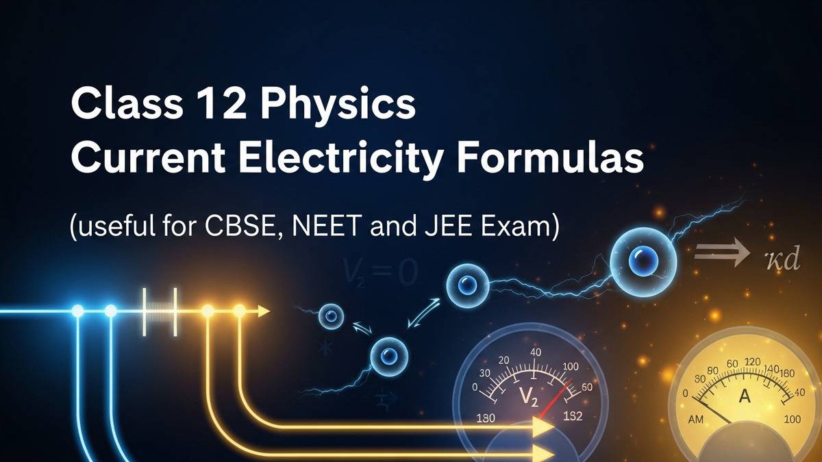 Find the concise Class 12 Physics Chapter 3 formulas list for quick and last-minute revision during exams. Practice important numerical problems related to drift velocity, Ohm’s Law, resistivity, Kirchhoff’s laws, and other topics using these formulas.