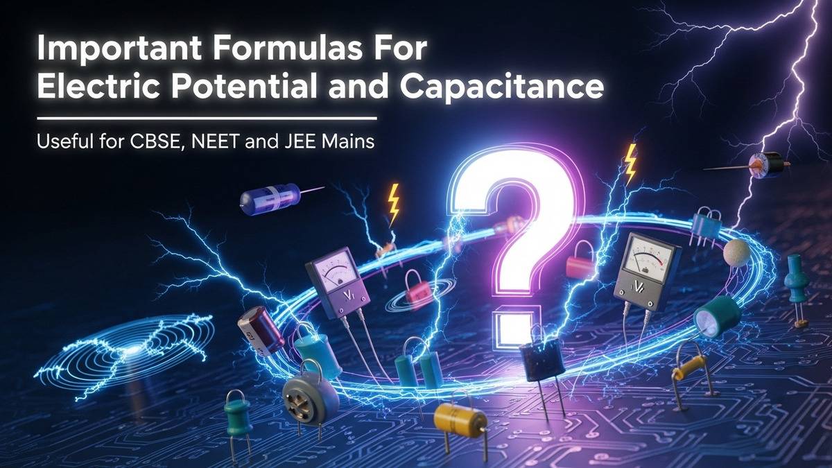 You'll get compiled electric potential and capacitance formulas here. These formulas are very useful for quick revision in class 12 Boards and other exams. You can check important formulas for electrostatic potential and capacitance below.