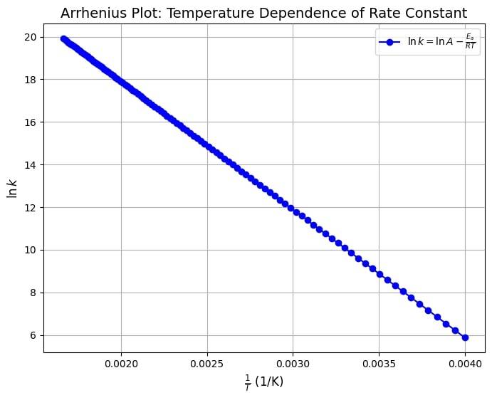 Taking the natural logarithm of the Arrhenius equation: