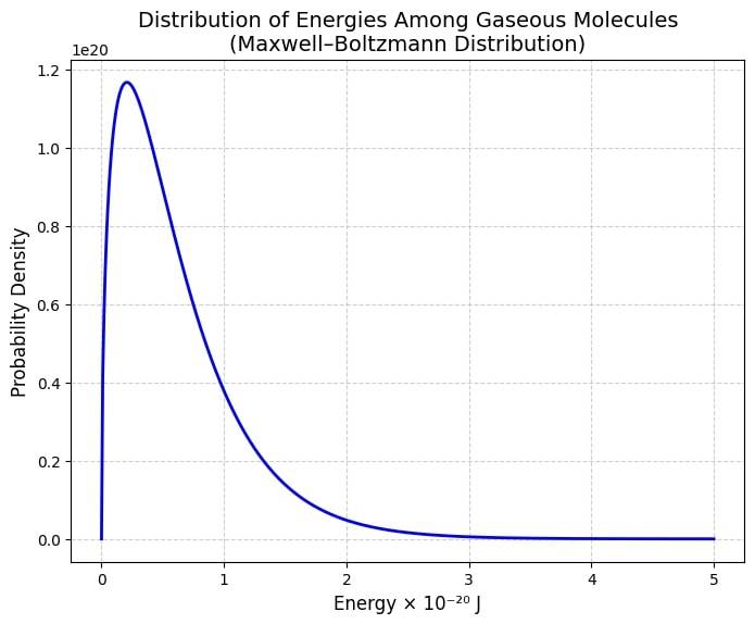 The Maxwell-Boltzmann distribution is a technique used to calculate the exact energies of different particles of a gas at a particular temperature. There are different molecules in a gas and each of them will have different speeds. Some will be fast and some will be slow.