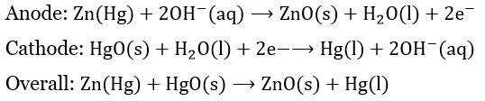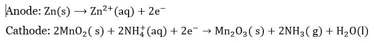 - Cathode: Carbon (graphite) rod surrounded by powdered manganese dioxide and carbon.