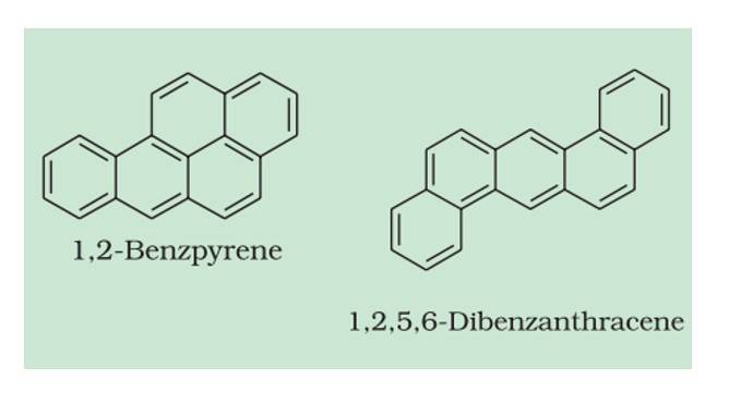 Many polynuclear aromatic hydrocarbons (PAHs) with more than two benzene rings combine and become cancer-causing, such as benz[a]pyrene, benzanthracene, which are present in tobacco smoke, coal tar, and automobile exhaust. They are carcinogenic.