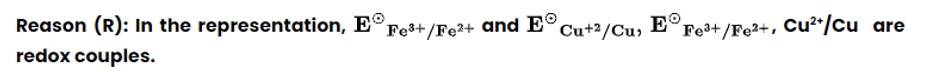Assertion (A) : Redox couple is the combination of oxidised and reduced form of a substance involved in an oxidation or reduction half cell.