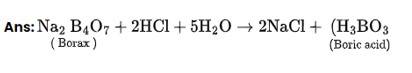 | Ans: When aqueous solution of borax is acidified with hydrochloric acid, boric acid is produced. As the name says, boric acid is acidic in nature but weak acid. Unlike protonic acid, boric acid is monobasic acid. It accepts electrons from the hydroxyl group of water and forms [B(OH)4]-. |