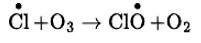 This chlorine radical then reacts with stratospheric ozone to form chlorine monoxide radicals and molecular oxygen. The reaction involved is-