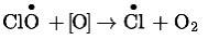 Reaction of chlorine monoxide radical with atomic oxygen produces more chlorine radicals and can be shown as-