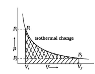 Graphically show the total work done in an expansion when the state of an ideal gas is changed reversibly and isothermally from (Pi, Vi) to (Pf, Vf) . With the help of a pV plot compare the work done in the above case with that carried out against a constant external pressure Pf.