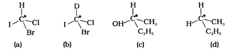 | Solution: Ans: The Correct Answer is Option (i). A racemic mixture is one that contains two enantiomers in equal quantities but has no optical activity because the opposing optical rotations of the two enantiomers cancel each other out. The optically active reactant undergoes the SN1 reaction in order for a racemic mixture to form following nucleophilic substitution. Option (a) is a chiral carbon atom that will undergo the SN1 process, resulting in a racemic mixture. Option (b) does not include an asymmetric carbon, but option (c) has a secondary carbon asymmetric atom that is less reactive to an SN1 substitution. The right answer is (i). |