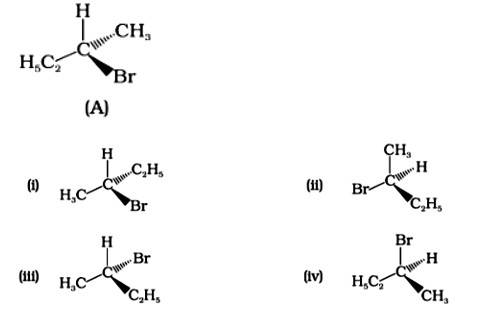 | Ans: An SN2 reaction, also known as a nucleophilic substitution, is the reaction in question. The entering nucleophile causes the groups surrounding the carbon atom to migrate in the opposite direction of the nucleophile, causing the configuration of alkyl halides to invert. As a result, (b) and (d) will be in the opposite order. This reaction is also SN2 since there is just one phase in which OH- is added and Cl- is removed at the same time. (i) and (ii) are the right answers. Correct Answer: Option (A) and (B) |