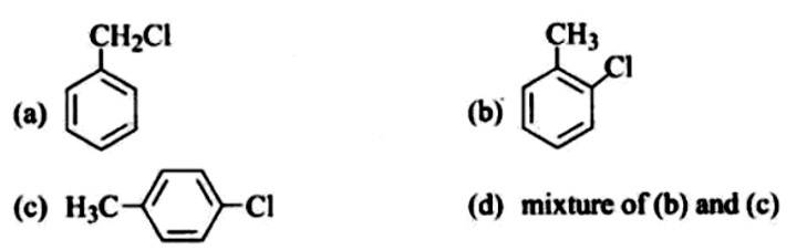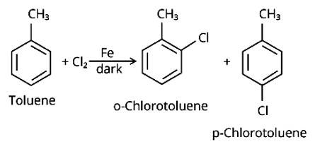 When an arene is treated with Cl2 in the presence of FeCl3, the electrophilic addition reaction chlorinates the arene to produce aryl chloride. As a result, the chemical provided is C6H5-CH3, often known as toluene. o-chlorotoluene and p-chlorotoluene are the results of electrophilic substitution chlorination.