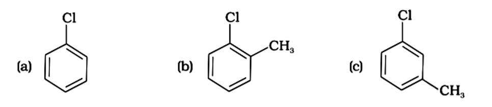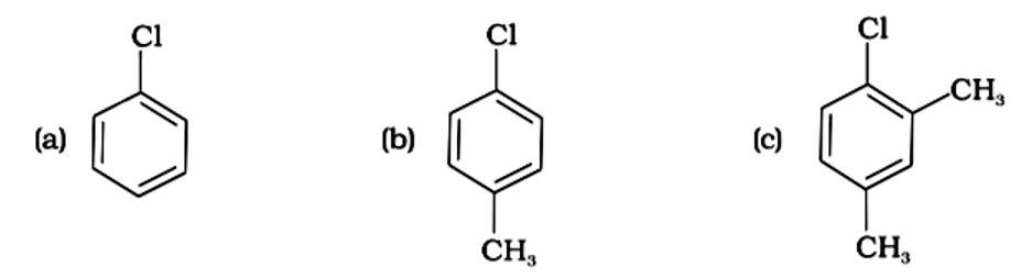 | Ans: The Correct Answer is Option (iii). The presence of electron releasing groups increases the reactivity of aryl halides; the fewer the electron releasing groups, the slower the rate of nucleophilic substitution. As a result, an increase in methyl groups decreases reactivity. The sequence of reactivity is (a) > (b) > (c). The right answer is (iii). |