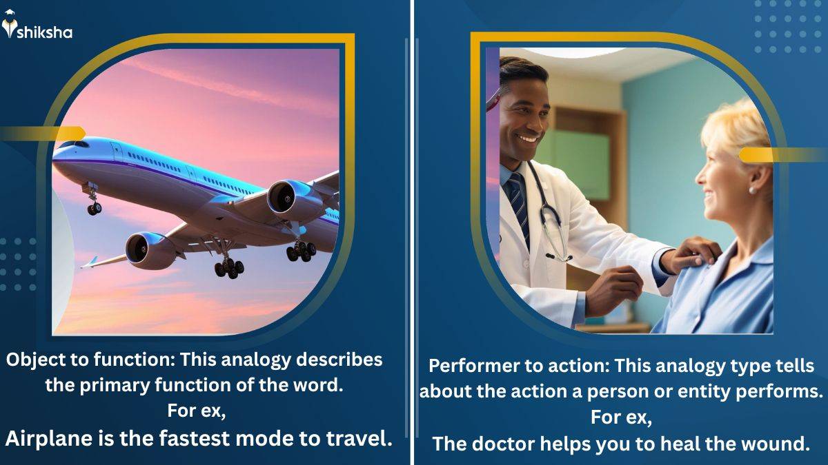Object to function: This analogy describes the primary function of the word. For example, Airplane is the fastest mode to travel.