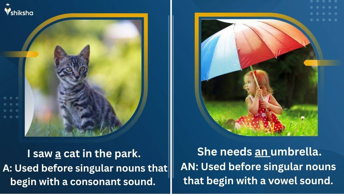 A and an are important parts of English sentence structure. While they are easy to understand, there are few exceptions and special cases that students should keep in mind while using these indefinite articles in English language. This page will help students cover all such important topics about indefinite articles along with some practice questions in the end. It will also tell you the difference between Definite Articles and Indefinite articles in English grammar.