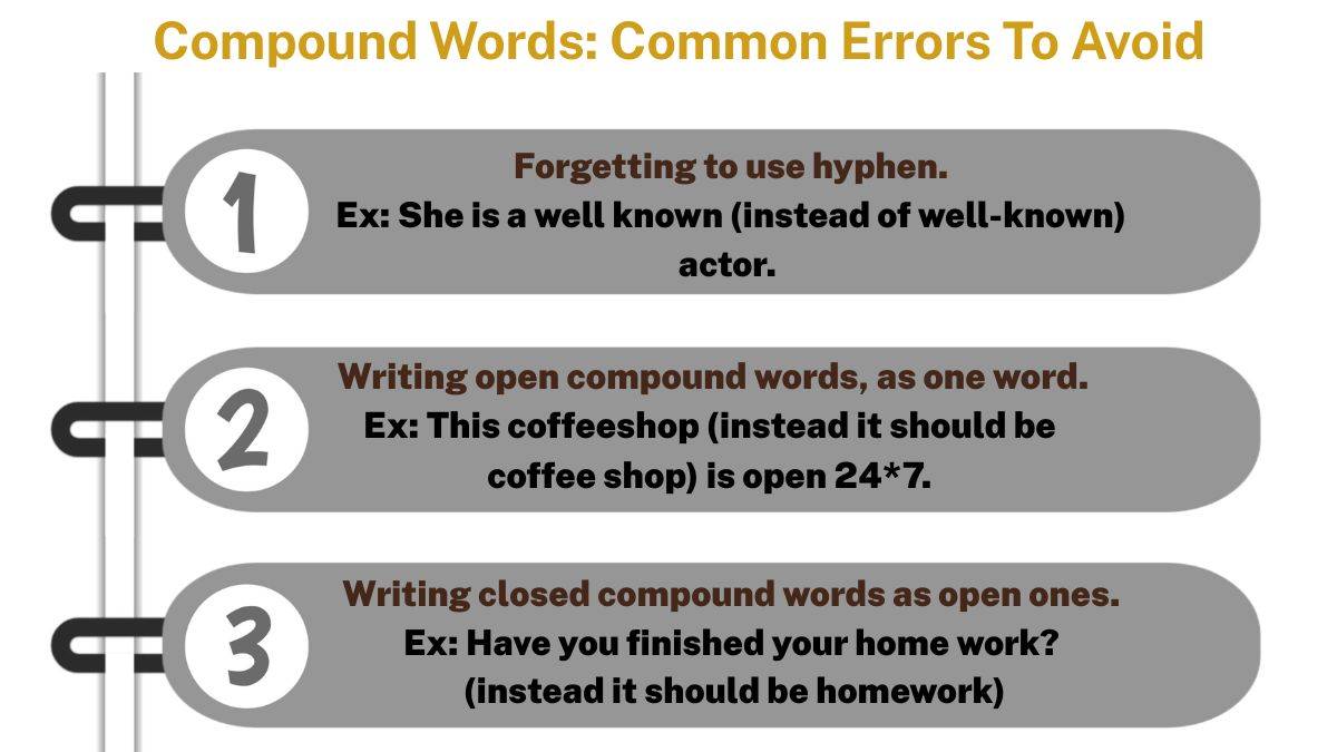 · Students should keep in mind the spellings to avoid errors using compound words.