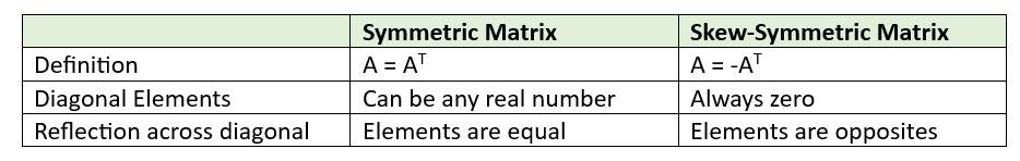 Difference Between Symmetric and Skew-symmetric Matrix