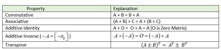 - Subtraction of matrices does not commutative and associative properties as addition.