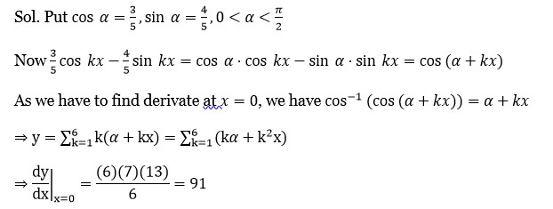 If y = Σ???? kcos?¹{ (3/5)coskx - (4/5)sinkx }, then dy/dx at x=0 is