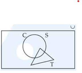 Let S = set of points inside the square, T = the set of points inside the triangle and C = the set of points inside the circle. If the triangle and circle intersect each other and are contained in a square. Then