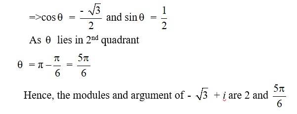 Class 11 Maths Ch 5 Exercise 5.2 SolutionsFind the modulus and the arguments of each of the complex numbers in Exercises 1 to 2. Q1. z = –1 - i √3 |