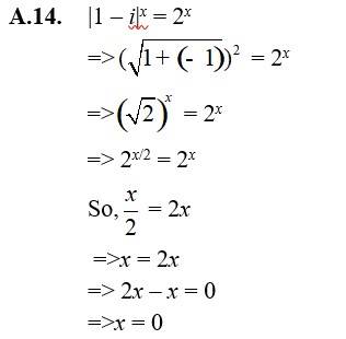 | A.13. Let z = -i Then = i And |z|2 = (-1)2 = 1 So, multiplicative inverse of –i is given by z-1 = = = i = 0 + i1 |